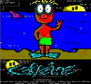 This was also the time I started getting into punk rock. I was really getting into it, especially the local bands. I decided to make 2 bbs's instead of just one. So when you called up my computer, you could select Zero Hour, my ansi art bbs, or Caffeine, my all music bbs. It wasn't that big of a hit, because zero hour was so popular, not many people even checked out caffeine. But it was really cool to me. Around summer of 95, I got a girlfriend and she was taking up most of my time. So I decided to kill my modding group firm. Well, I didn't kill it, instead I merged it with a group called TMS, also known as the mod squad. They were a good modding group and I would say tms & firm were the 2 biggest modding groups.